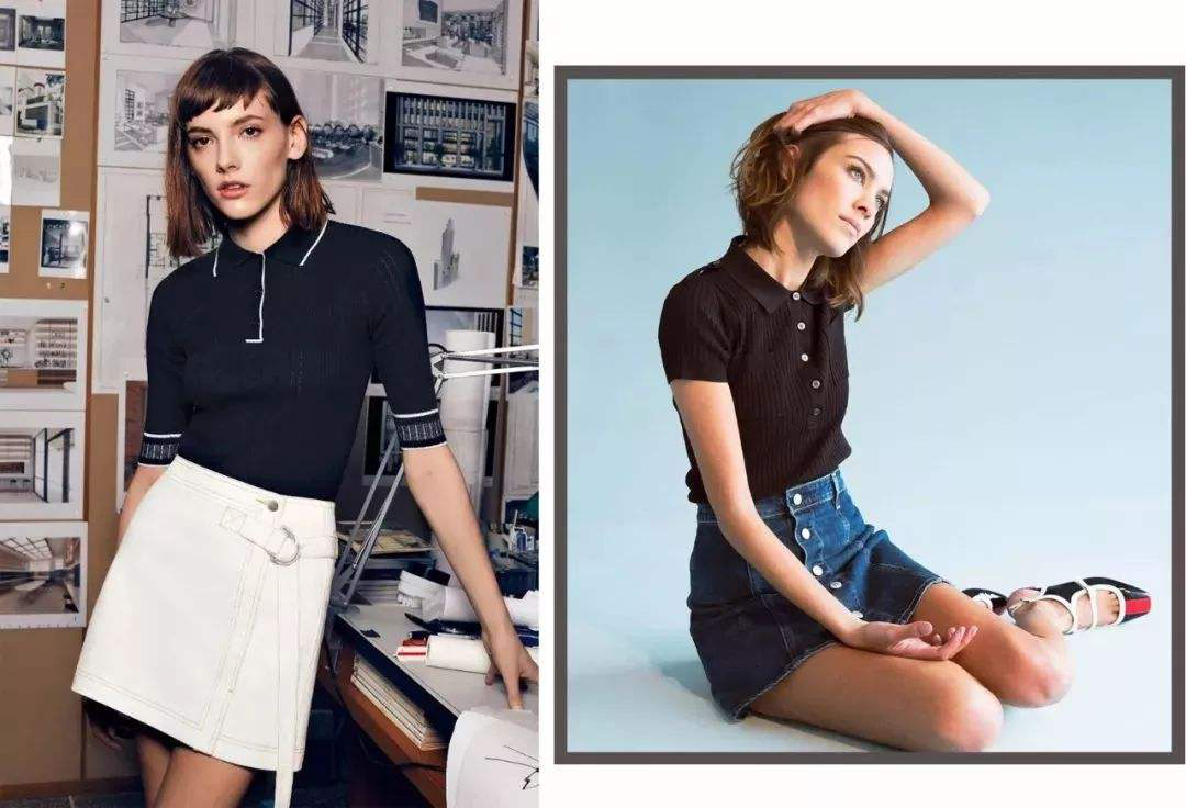 The highlight of this outfit is to choose a tighter Polo shirt with an A-skirt with a thin waist and a slightly wider hem, which can perfectly outline the silhouette. The slender waist and well-fitting Polo shirt not only make people look small, but also have a sexy charm.