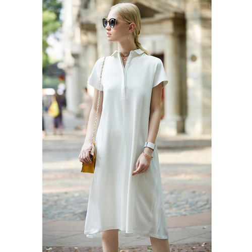 Process the POLO shirt into a long skirt without the length t is so neutral, yet looks so feminine. Wearing a white Polo dress and matching it with a white watch is really what a little fairy wears.