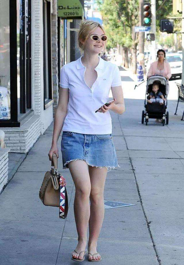 This group looks more relaxed and casual, with a loose POLO shirt + denim skirt. A free and casual atmosphere. For a light-colored outfit, choose a bag with a bright color as an embellishment. The hair color, bag color and shoe color echo each other, which is just right.