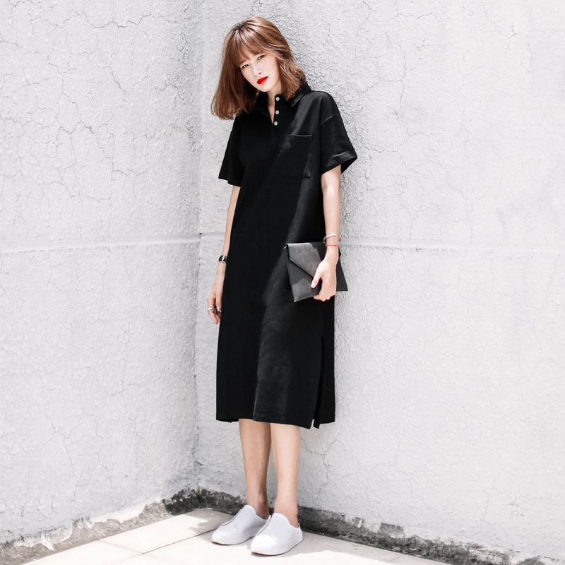 POLO shirts always feel like boyfriend shirts. Lengthening the Polo shirt into a long T changes the usual style and makes people’s eyes brighter. Polo collar and side slit POLO shirt, full of boyfriend style.