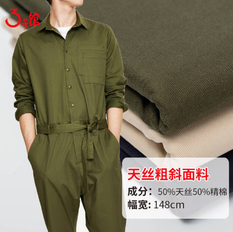 Tencel thick twill fabric: The composition of the fabric is 50% Tencel + 50% cotton. The overall moisture absorption and breathability of the fabric is very good, and it feels delicate It is very skin-friendly and has good drape when made into wide-leg pants. The fabric price is 33 yuan per meter.