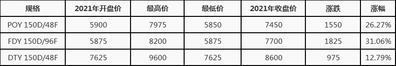 In the first half of 2021, domestic polyester filament prices showed a trend of fluctuation after rising. From the beginning of the year to mid-March, with the support of the cost side, factory production and sales increased, and filament prices continued to rise. Taking POY 150D/48F as an example, it rose from 5,900 yuan/ton at the beginning of the year to 7,975 yuan/ton in mid-March. More than 2,000 yuan/ton.