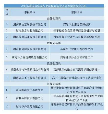 Typical cases on this list include Changsha enterprise Hunan Mengjie Home Textile Co., Ltd.’s “high-end bedding brand innovation”, Hunan Oriental Fashion Co., Ltd.’s “innovation and transformation of the Sundesi brand based on ease and comfort” and Hunan Province’s Unforgettable Clothing Co., Ltd. “cannot forget the cases of clothing fashion creativity and modern craft design” and so on.