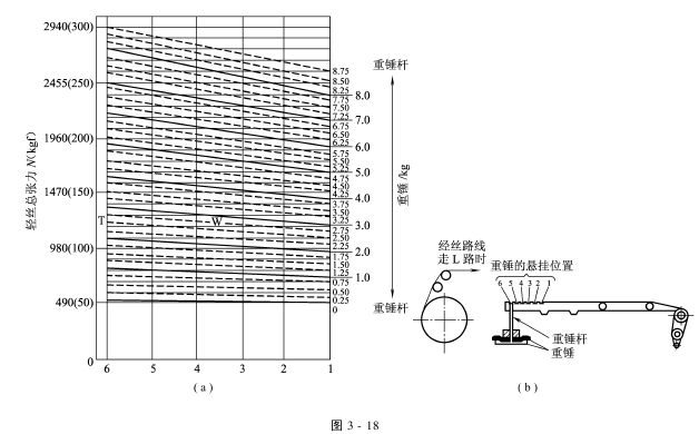 The relationship between tension and weight shown in Figure 3-18 is only a theoretical calculation value and can only be used as a reference. It should actually be done after the loom is put into operation, depending on its operation conditions.