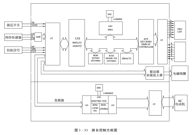 (5) Two-way communication from the website to the loom control panel. Set working parameters directly through the loom control panel or through the Roj handheld terminal. (6) Through the completion tube or RojTFE4 spinning yarn detector installed in SuperElf, the action of weft breaking can be controlled at the input. (7) Loom stop function.                                                                            The schematic diagram of the engine control system is shown in Figure 3-55.