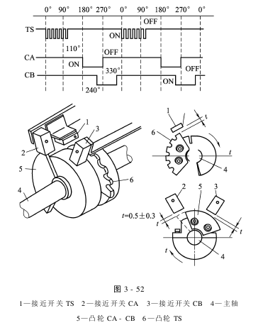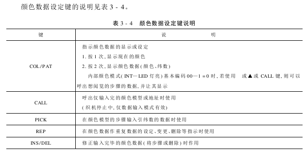 The electronic weft storage device can wrap the weft around the length measuring drum according to pre-set data and place the weft quantitatively. This device consists of weft storage control, length measurement control, weft selection control, yarn presser control, steering water valve control and water replenishment valve control. (1) Weft storage control: In order to prevent insufficient weft storage when the loom is started, the necessary amount of weft must be wound in advance. (2) Length measurement control: Use electrical signals to control the suction and disconnection of the solenoid valve (finger stick) to control the length of each weft. (3) Weft selection control: The weft selection command device carries out two-color or three-color weft selection instructions to select the weft. (4) Yarn presser control: controlled by the terminal, the weft is clamped or released according to the preset angle. (5) Steering water valve control: Same as weft selection control, and synchronized with color selection. (6) Water replenishment valve control: After the loom stops, replenish water to the water pump manually or automatically. The electronic weft storage device usually consists of a weft storage head, a control box, a preset device and a manual switch. See Figure 3-49 for details. At present, most domestic water-jet looms are generally equipped with Kasuga weft feeder (PAW) and ROJ weft feeder (IRO). In recent years, many domestic manufacturers have also launched their own products, but the basic models are still the above two. The two types of weft feeders are introduced separately below. 1.PAW weft feeder The shape and structure of the weft feeder head are shown in Figure 3-50. Theweftfeedershowninthepictureisofstandardstructure,alsoknownasrollertype.Itconsistsof2drivingrollersand4freerollers.Thefreerollercanbeusedtoadjustthewindinglength(yarnpreparationlength)andwindingtension.Changingtheradialsizeorangleofthefreerollercaneasilyadapttovariousfibersordifferentdoorwidths.Therollertypeweftfeederhasobviousadvantageswhenusedfortwistingyarn.Figure3-51showsthestructureoftherollertypeweftfeeder.Themovementoftheweftstorageheadshouldbesynchronizedwiththestartandstopoftheloom.Whentheloomisstartedandrotatestotheangleofwaterdischargefromthenozzle,thefingerrod(electromagnetichook)oftheweftfeederislifted,andtheyarnpresserisalsoreleased.Thewaterflowinthenozzlebringstheweftout,completingtheweftinsertionprocess.Whentheweftthreadreachestheend,thefingerstickisloweredandtheyarnpresserisclosedtopreventtheweftthreadfromslackening.Here,theattractionordisconnectionofthefingerrodandtheyarnpresseriscloselyrelatedtotheoperatingangleoftheloom.Therefore,theweftfeedermustrequiretheloomtoprovideoperationsignalsandreferencesignals,AweftfeedersignalandBweftfeedersignal.Theabovesignalsaregenerallycontrolledbythreeproximityswitches.TheinstallationanddebuggingmethodisshowninFigure3-52. Proximityswitchadjustment:ThecolorconversionsignalisoutputbyproximityswitchesTS1,CA2,andCB3.TSistheswitchfortimingreference,CAandCBareproximityswitchesforcolorswitching.Thegapbetweentheproximityswitchandthecamisadjustedto0.5±0.3mm;oncethecamisclosetotheproximityswitch,itscorrespondingLEDlightwilllightup.Theoperationoftheweftfeeder,includingtheparametersettingsormodificationsofthefingerbar,yarnpresserandrotaryvalve,etc.,arealloperatedonthepresetdeviceontheweftfeedercontrolbox.Thereare3typesofpresetkeys,includingcommandkeys,colordatasettingkeys,andbasickeys,totaling30.SeeTable3-3forthedescriptionofthecommandkeys.
