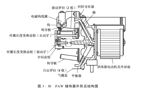The control block diagram of the PAW weft feeder is shown in Figure 3-53. 2.IRO weft storage device TDS/Z is a weft storage device with separated yarn loop gaps that can be installed on air-jet and water-jet looms. It is suitable for a wide range of spinning yarns. Ranging from 20dtex (fine yarn) to 120tex (roving yarn). It places the weft according to the required weft length. The appearance of the weft storage head is shown in Figure 3-54. The functions of the IRO weft feeder: (1) The yarn winding disc can be set to rotate in the S or Z direction, depending on the twist direction of the spinning yarn. (2) The weft yarn is stored into separate yarn loops and the yarn separation distance is adjustable [Note: The yarn loop interval can be set between 0.7mm (small diameter yarn storage drum) and 2.2mm (large diameter yarn storage drum) ]. (3) The released yarn loop is tested by the electric tube. (4) The adjustment of weft length [LENGTH] is preset by adjusting the diameter of the yarn storage drum and setting the number of yarn loops to be released (range of weft length: 64 ~ 520cm).