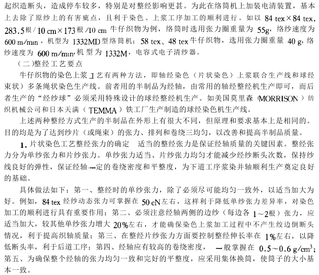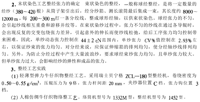 This process process masks the regional color differences caused by the coloring process by arranging the colored warp yarns twice in the process from warp dividing to sizing, making the finished product uniform and soft in color.  , after the work clothes are stone ground and finished, there will be no color stripes and the quality is good.  However, there are many processes, and the investment, floor space, and labor are relatively large.