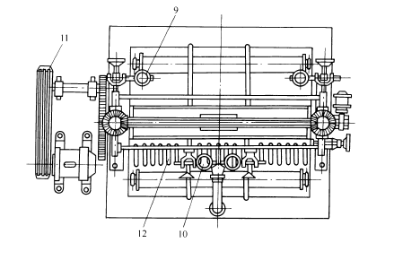 As for the pressure on the upper liquid rolling roller, it is applied through a small spring installed at the end of its shaft. Its pressure increase, pressure relief and lifting actions are performed by a manual cam.